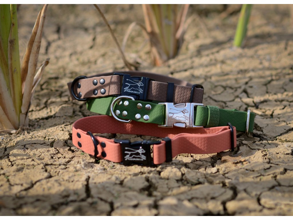 Prémiový voděodolný obojek vyrobený z příjemného HEXA materiálu. Vyniká vysokou odolností proti opotřebení, vodě, špíně a bakteriím. Je vybaven kvalitní kovovou sponou typu KLIK pro maximálně bezpečné a pohodlné zapínání.  Šířka 25 mm je ideální pro střední a velká plemena psů. Díky české ruční výrobě garantujeme nejvyšší kvalitu zpracování.